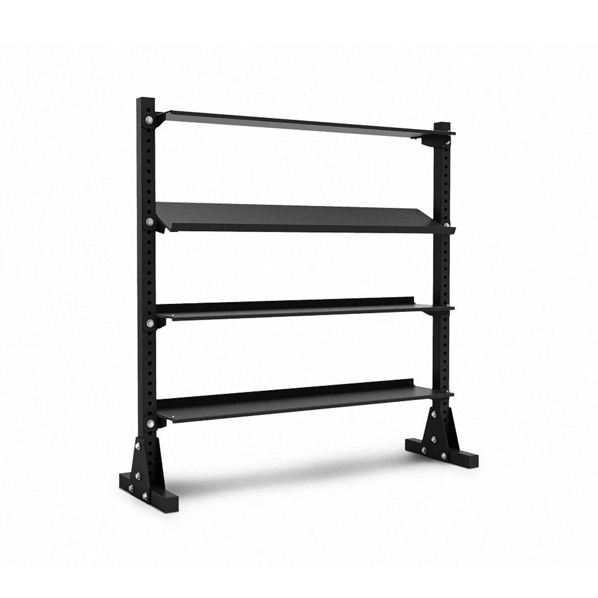 Avec ses 4 larges zones de stockage, il offre amplement d’espace pour organiser et ranger votre matériel d’entraînement, qu’il s’agisse d’haltères, de kettlebells, de ballons, ou d’autres accessoires. Chaque plateau mesure 177 x 33 cm, permettant une grande flexibilité dans le rangement.