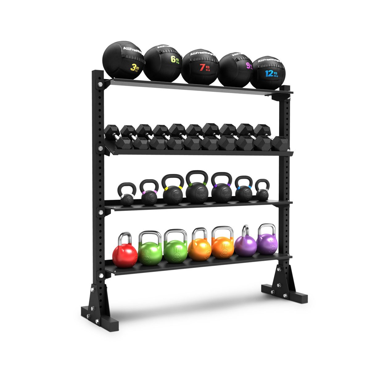 Le rack AFW modèle 944104 à 4 étagères est un support polyvalent et robuste, conçu pour le stockage efficace d’une grande variété d’équipements d’entraînement. Son design est pensé pour l’organisation et la durabilité, en faisant un atout indispensable pour tout espace sportif.