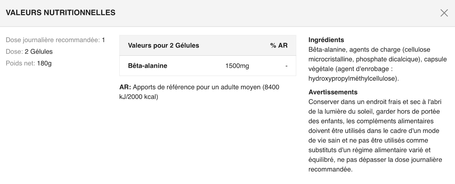 • Bêta-Alanine (1500 mg par portion)