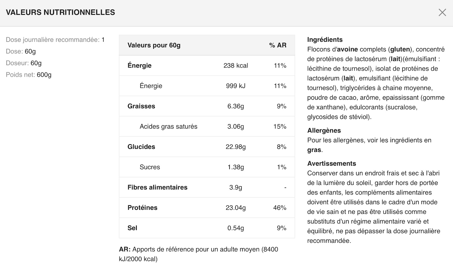 • Contient du gluten, du lait et peut contenir des traces de soja, fruits à coque ou arachides.