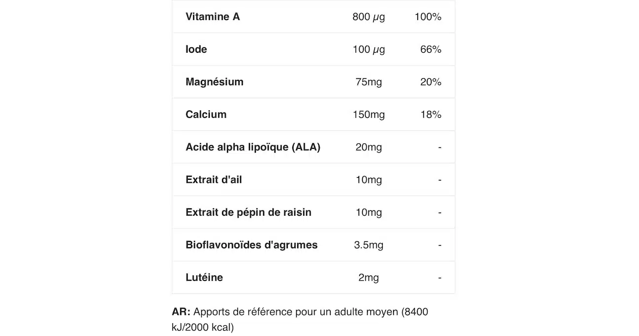 • Combine micronutriments essentiels et extraits ciblés dans une seule prise